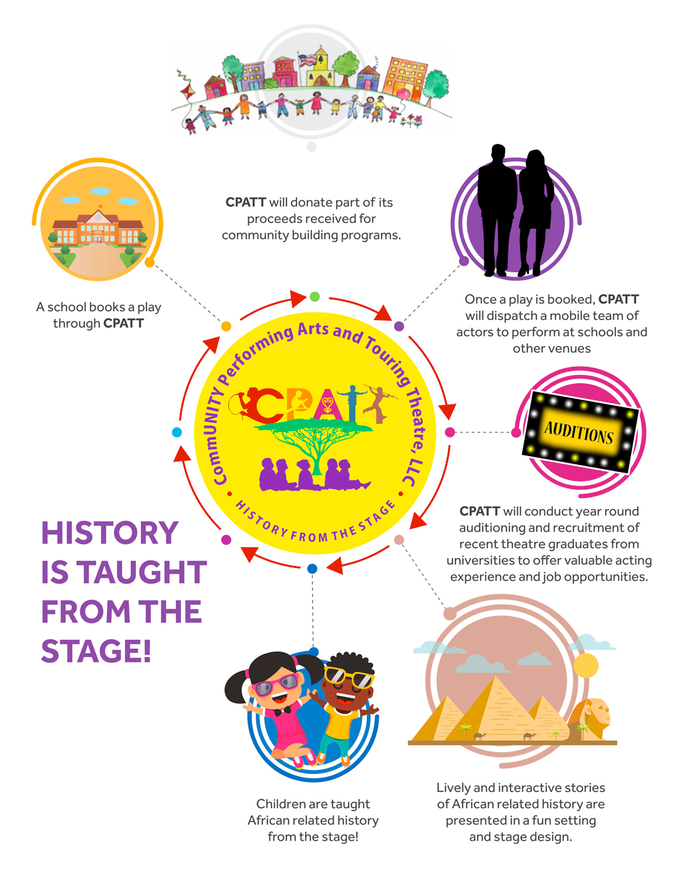 Live theatre has a way of conveying messages that are effective, memorable and long lasting. CPATT’S philosophy is meant to instill a sense of knowledge and awareness in a fun and interesting way through live theatre by introducing the basics of African related history for all children to enjoy no matter their ethnic background. Adults can enjoy these performances as well.